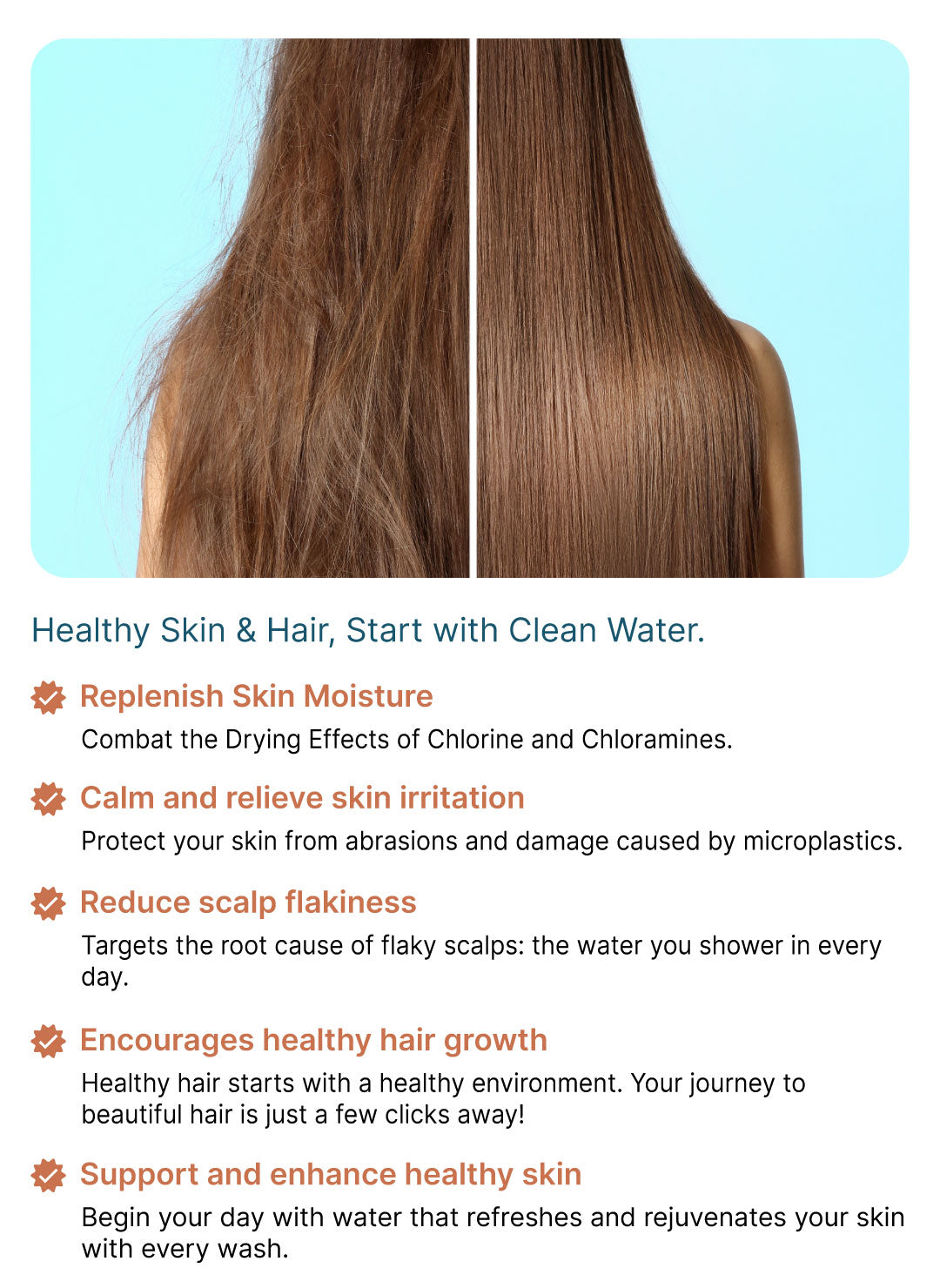 Skin & Hair Care: Removes chlorine to boost skin and hair health.