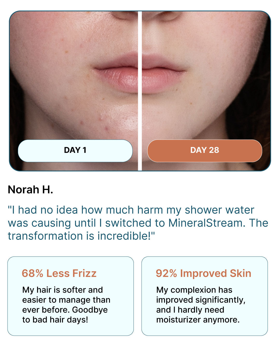 Our state-of-the-art shower filter was rigorously tested in a 6-month clinical study led by independent PhD researchers.